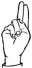 На ћирилици написано УНА КОЈОВИЋ састоји се из 10 слова [?]. Исписано ћириличном једноручном азбуком за глувонеме: